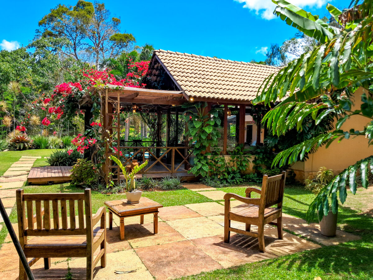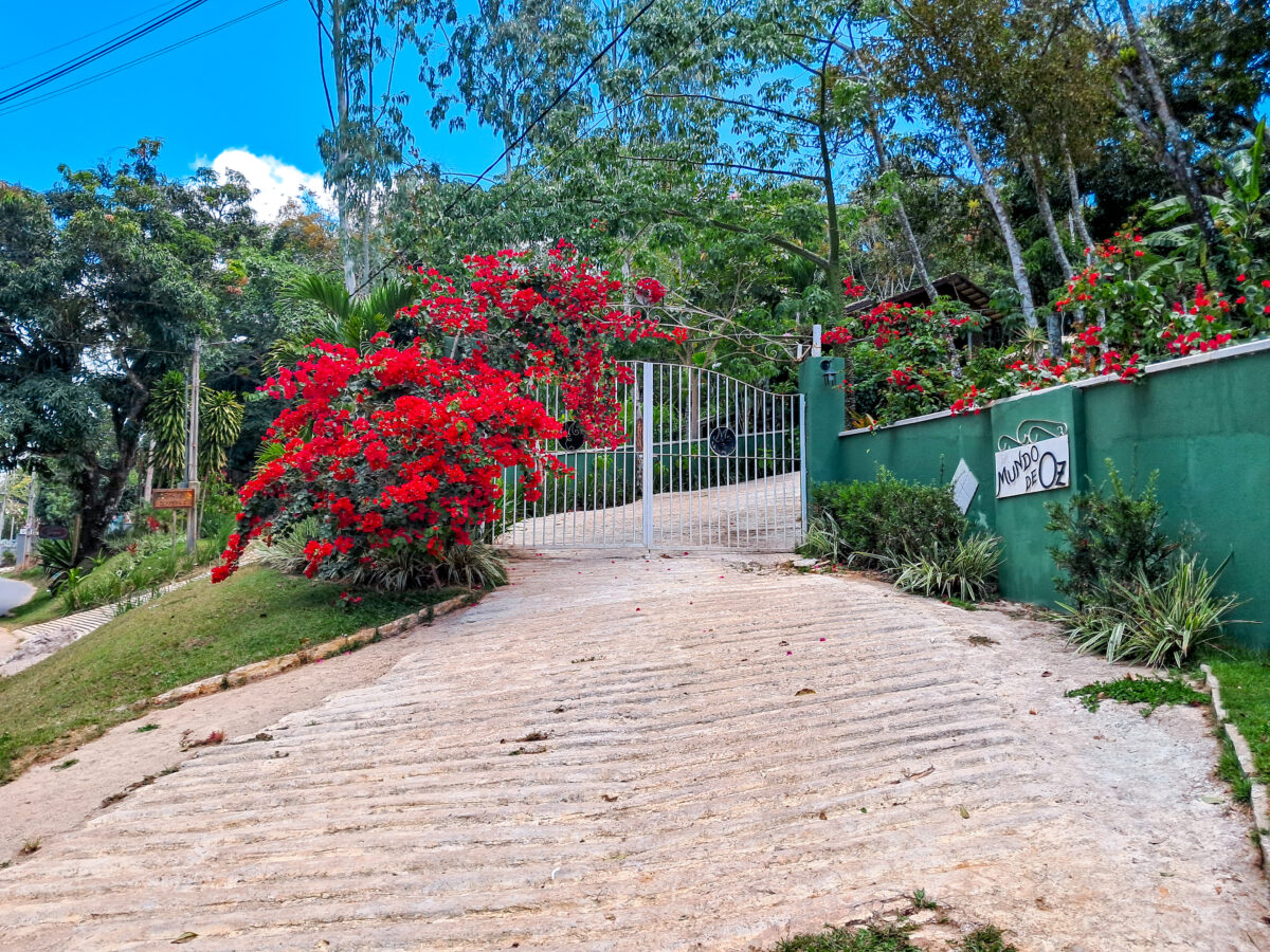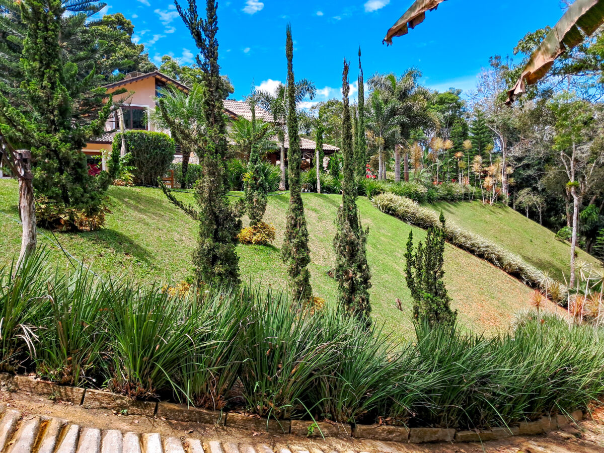 O jardim é um show à parte: muita área plana, flores e um clima de tranquilidade total — e o melhor: fica a apenas 9 km do centro, de frente pro asfalto, com acesso fácil.