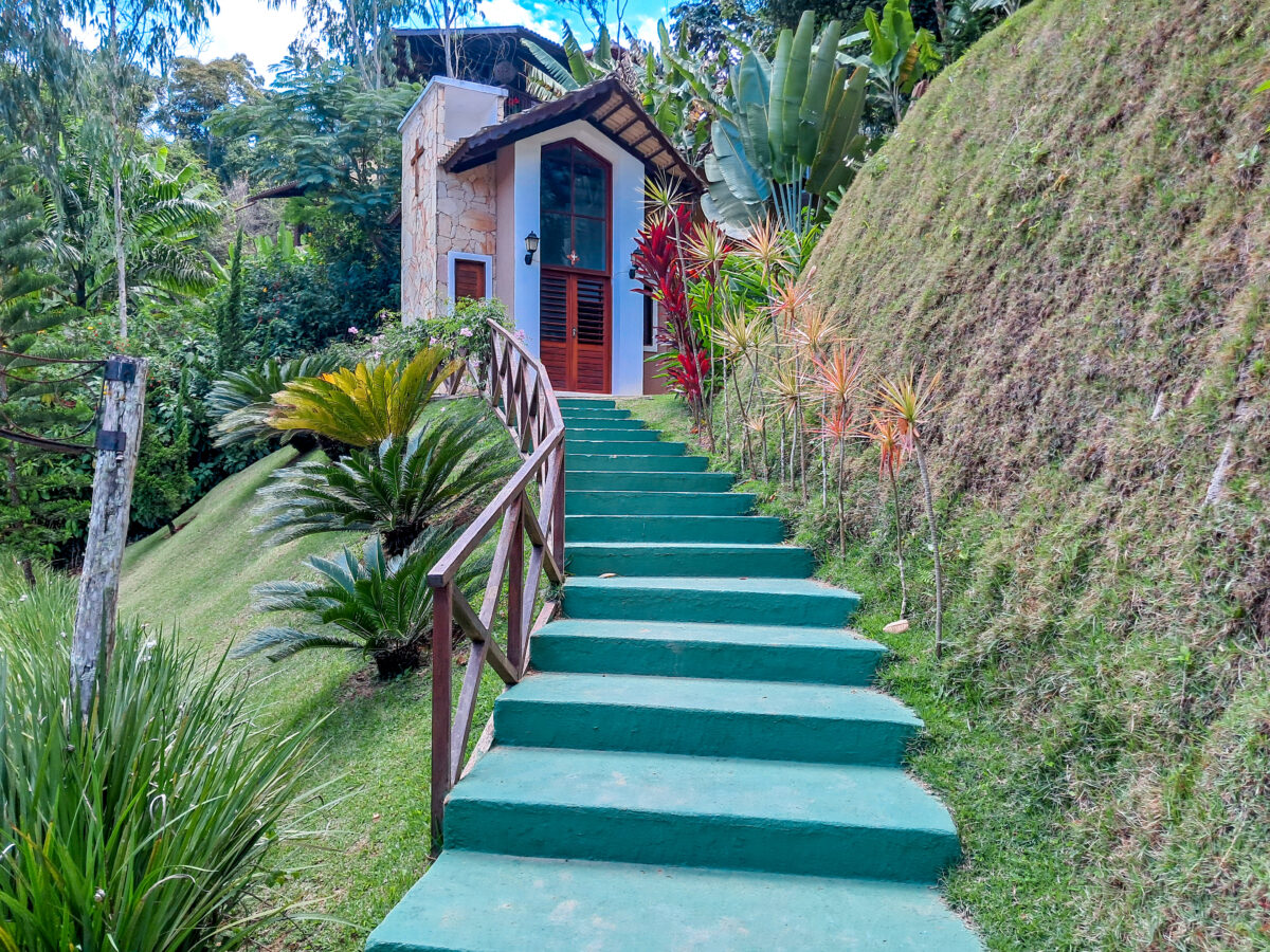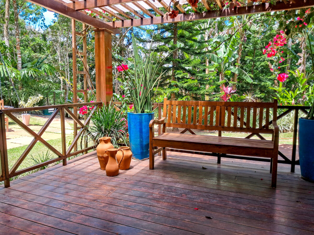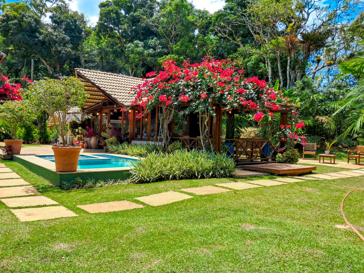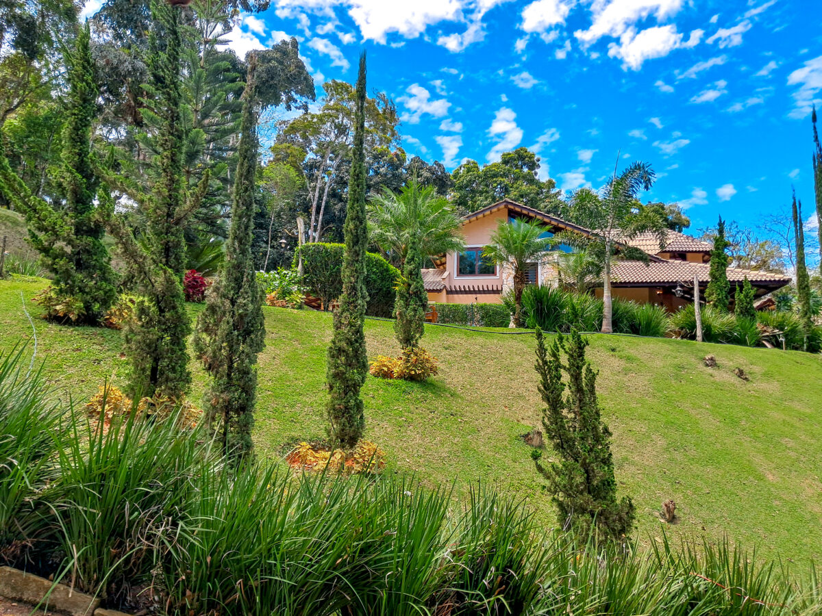 O jardim é um show à parte: muita área plana, flores e um clima de tranquilidade total — e o melhor: fica a apenas 9 km do centro, de frente pro asfalto, com acesso fácil.